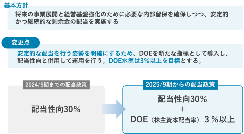 2024年10月からの3年間は「為替変動に強い経営体質へ」を目標に掲げて取り組みを推進した結果、1年目の2025年9月期に黒字化、業績のV字回復を達成いたしました。これを受け、立て直しから「次の成⾧曲線を描くステージ」へ移行するため、2025年10月に再び中期経営計画を見直しました。2025年10月から3年間(2025年10月~2028年9月)は、さらなる飛躍のための新たな基盤を構築することを目指して、全力で取り組んでまいります。