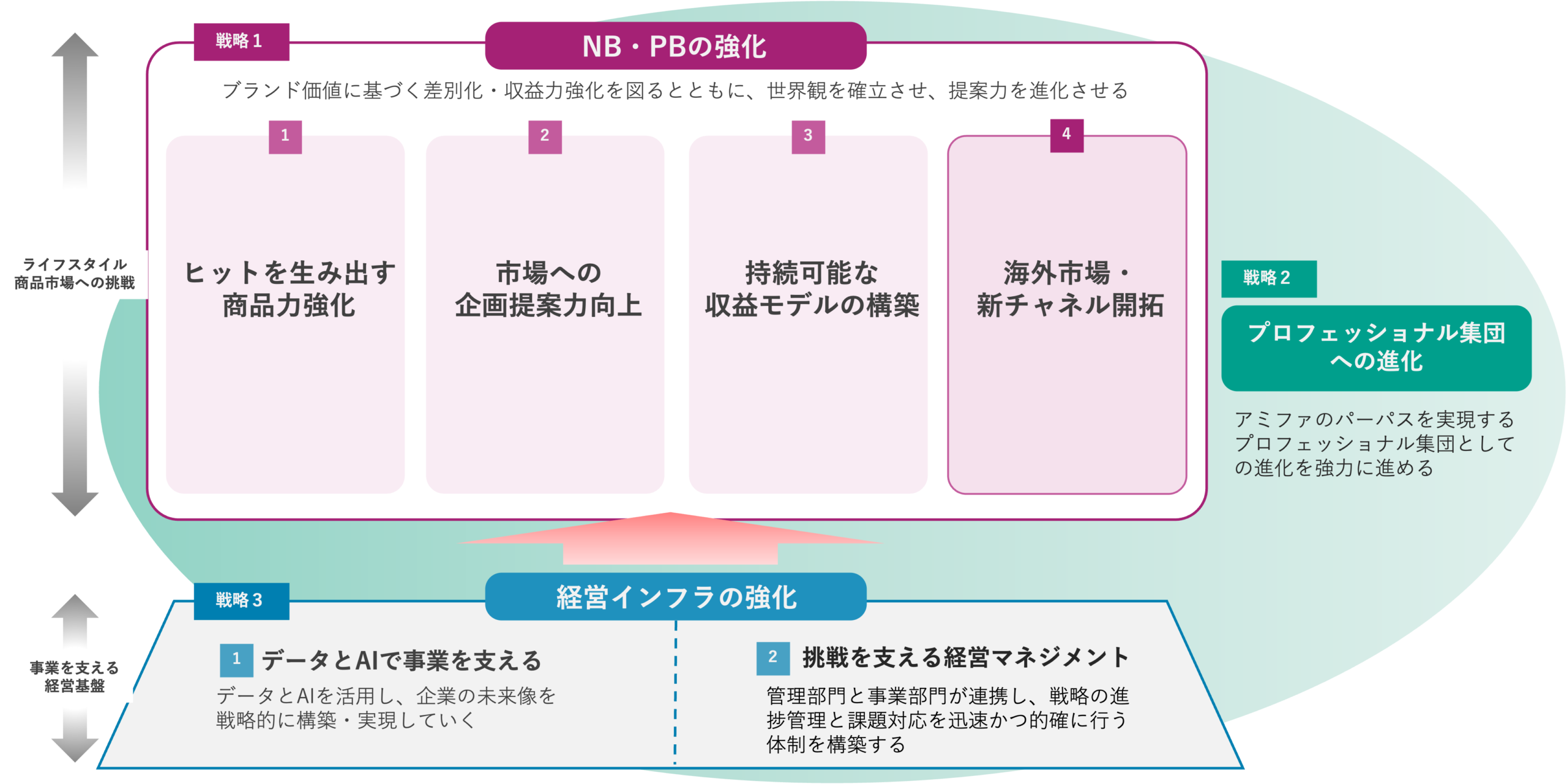 (*2)NB:当社独自のブランド名(主に「amifaⓇ」)で販売/PB :他社ブランド名で販売、企画と製造、もしくは製造のみを当社が担う